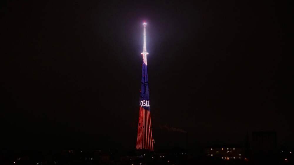 23 февраля телебашня будет подсвечена цветами российского триколора. На медиафасаде появятся изображения звезд, салюта, а также камуфляжная расцветка и поздравление «С Днем защитника Отечества!»